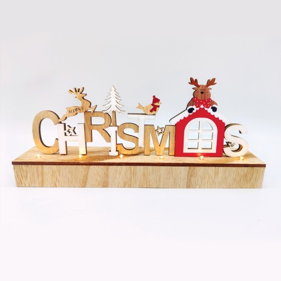 "WOODEN TABLE XMAS", 6 LED . ΜΠΑΤ. (2xAA), WW,IP20, 30X6X13CM