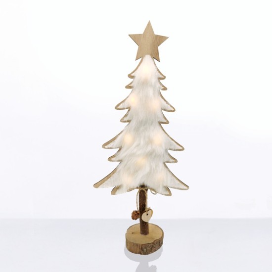 "WOODEN TREE WHITE FUR" 8 MINI LED ΛΑΜΠ. ΜΠΑΤ. (2xAAA), WW,IP20, 17.5X7X35CM