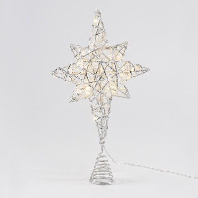 "SILVER TINSEL THREAD STAR 2" 20 MINI WW LED ΛΑΜΠ. ΜΠΑΤ. 3ΧΑΑ,IP20 28x5x20cm..