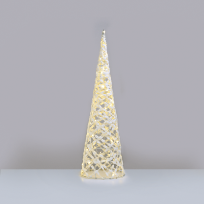 "WHITE COTTON THREAD CONE TREE" 50 MINI WW LED ΛΑΜΠ. ΜΠΑΤ. 3ΧΑΑ,IP20 Φ27.5X90CM..