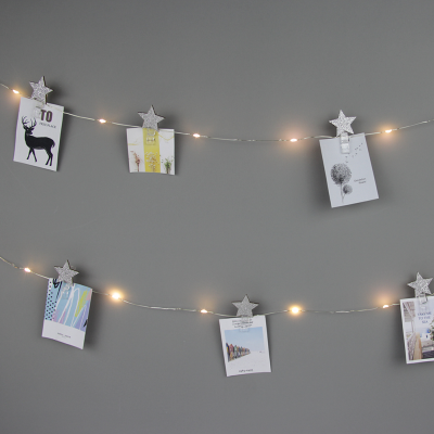 "12 GLITTER STAR CLIPS", 25 LED WW Λ/ΚΙΑ ΑΣΗΜΙ ΧΑΛΚΟΣ ΜΠ/ΡΙΕΣ (3xAA), IP20, 240+30cm, ΔΙΑΦ. ΚΑΛ. Τ..