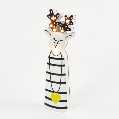 "WOODEN WHITE FELT DEER", 5 MINI LED ΛΑΜΠ. ΜΠΑΤ. (2xAAA), WW,IP20, 26X5X25CM..